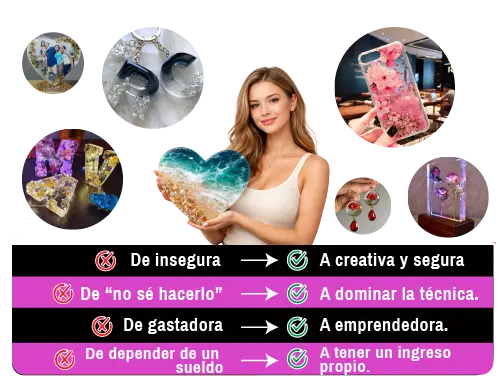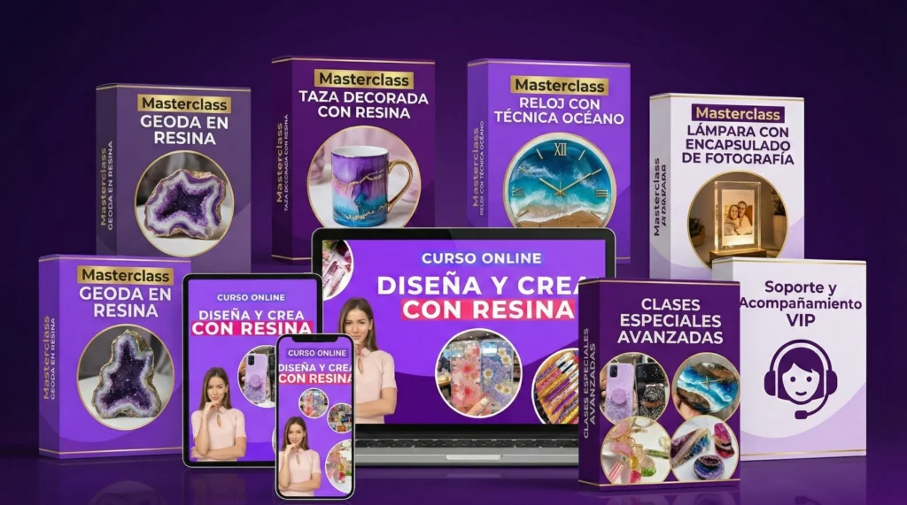 Descubre el método exacto y probado para dominar la resina desde cero y crear piezas de lujo 100% profesionales que podrás vender de inmediato, sin perder tiempo ni desperdiciar material costoso en el intento.