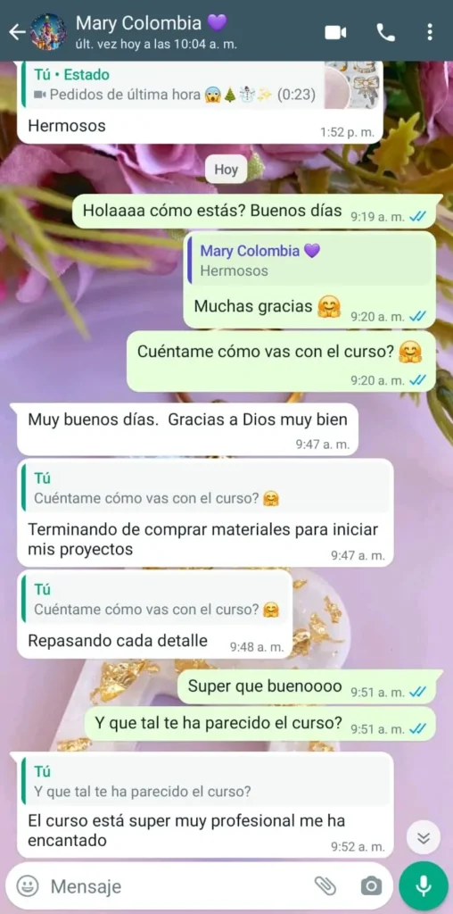 Accede a clases exclusivas donde aprenderás técnicas avanzadas como recuerdos de recién nacido en resina, secado de flores, y cómo crear llaveros inteligentes.