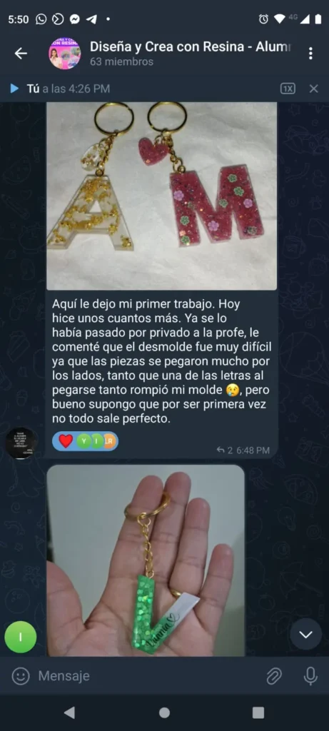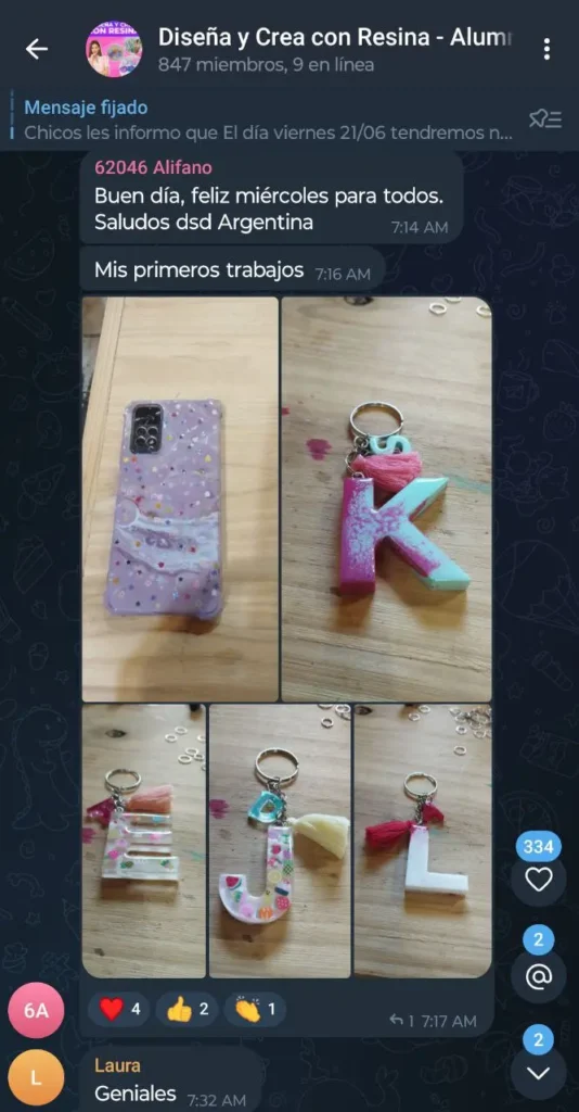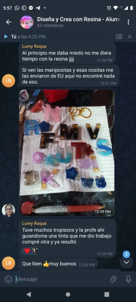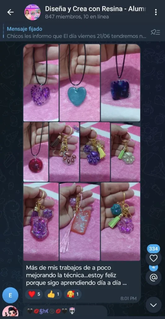 Hoy me dedico a tiempo completo a crear y vender accesorios en resina con mi propia marca, además de dictar talleres presenciales.